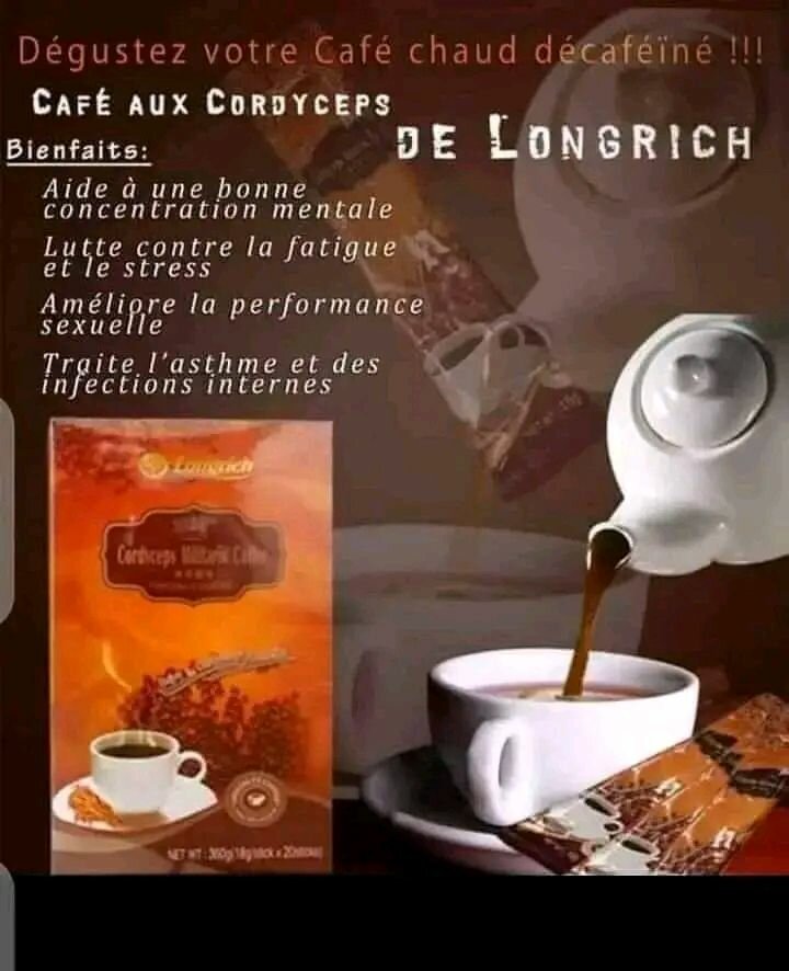 Découvrez le Café Cordyceps Décaféiné de Longrich, un mélange unique enrichi en cordyceps, acides aminés et vitamines. Ce café renforce le système immunitaire, améliore la concentration et combat le stress. Idéal pour une consommation quotidienne sans caféine!