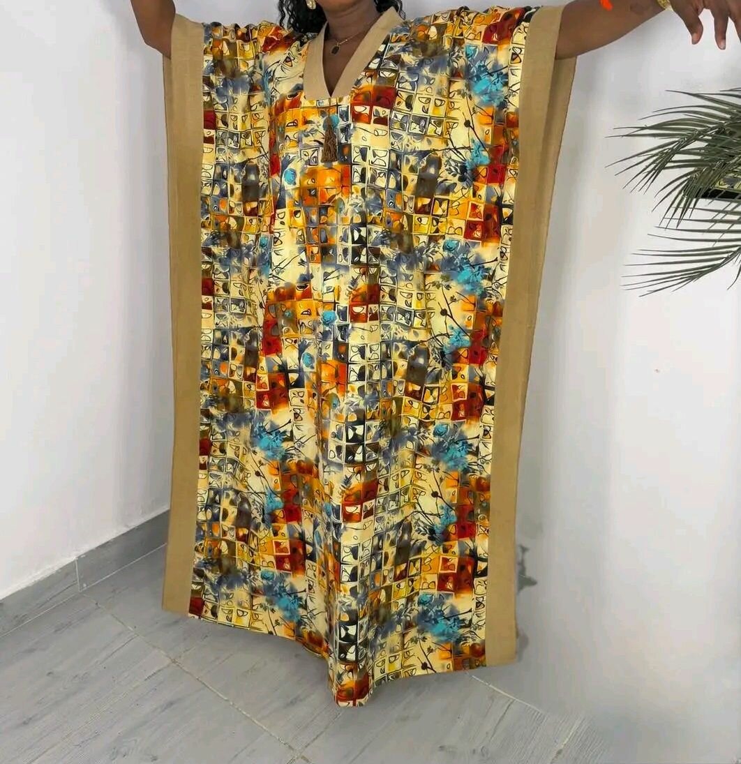 Caftan africain pour femme, confortable et élégant. Divers motifs et couleurs disponibles. Idéal pour des occasions spéciales ou pour un usage quotidien.