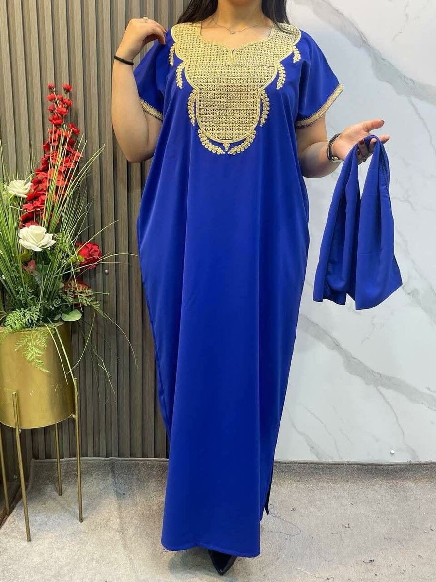 Optez pour ce caftan bleu élégant avec broderie dorée, idéal pour les occasions spéciales. Fabriqué en tissu léger pour un confort optimal. Parfait pour des soirées élégantes ou des événements festifs. Ajoutez une touche de sophistication à votre garde-robe avec ce modèle moderne et chic.