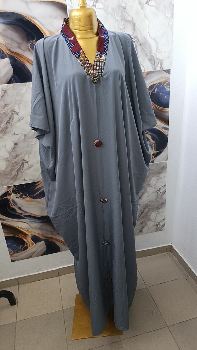 Découvrez ce magnifique caftan gris orné de boutons décoratifs et d'un col brodé. Parfait pour des soirées spéciales ou des occasions formelles. Son tissu de qualité assure confort et style unique. Une tenue idéale pour se démarquer avec élégance.