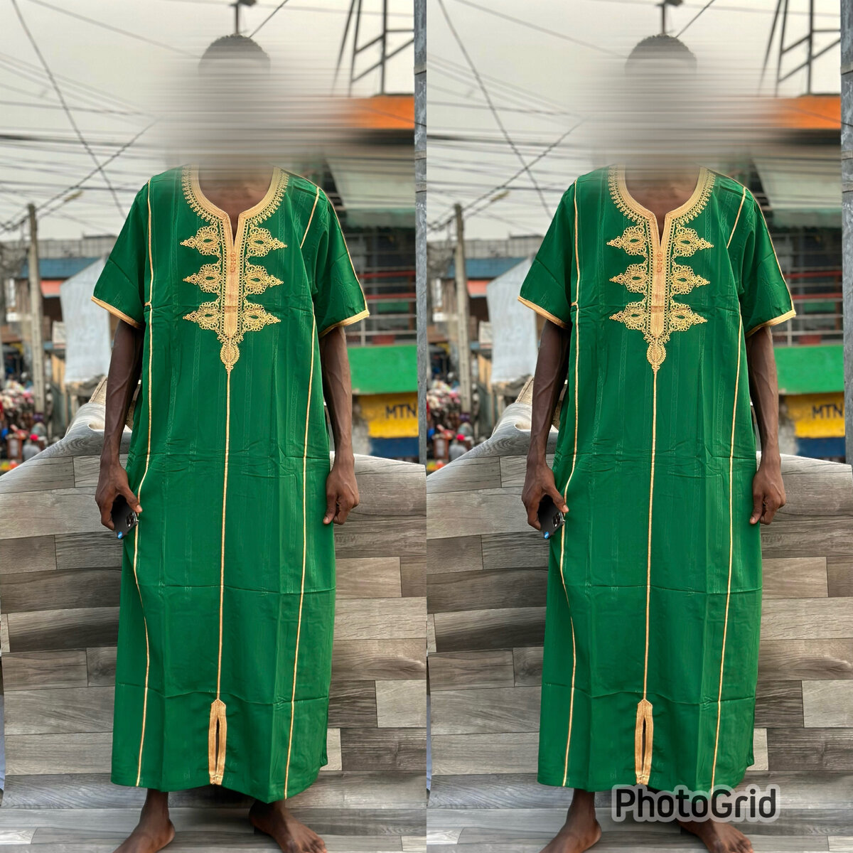 Caftan homme élégant en vert avec broderie dorée. Parfait pour les occasions spéciales ou le quotidien. Conçu pour un confort optimal.