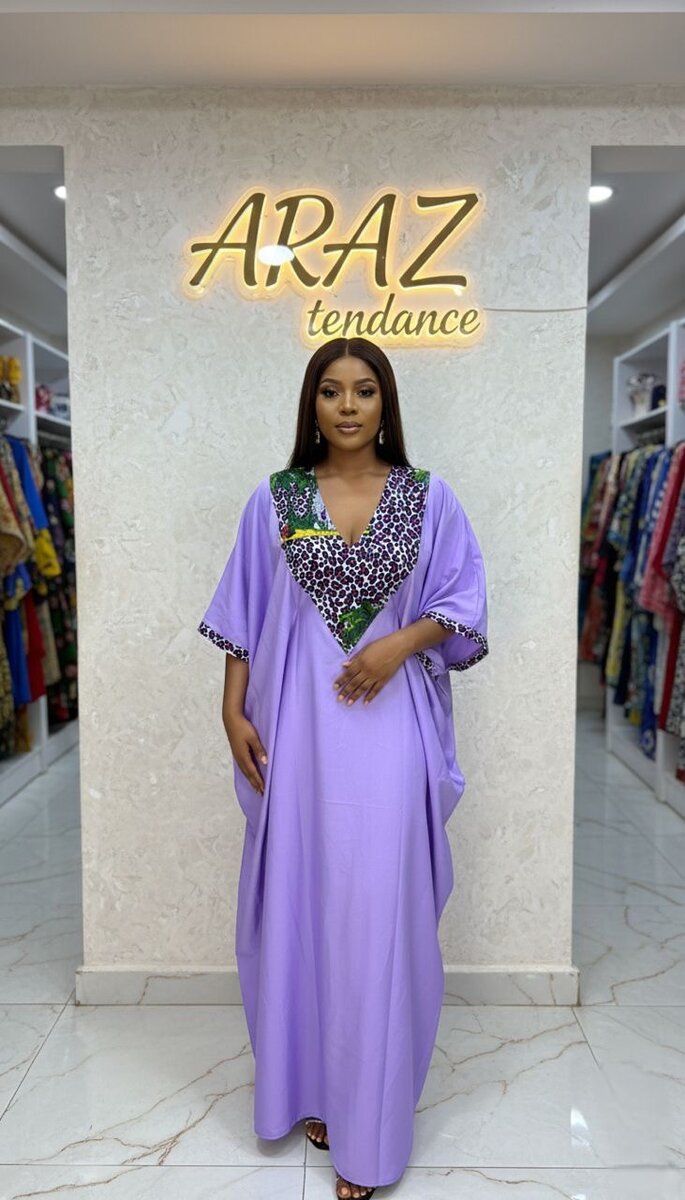 Élégant caftan marocain violet avec broderies vertes et détails contrastés. Parfait pour les occasions spéciales, il combine confort et style raffiné. Conçu pour mettre en valeur votre silhouette.