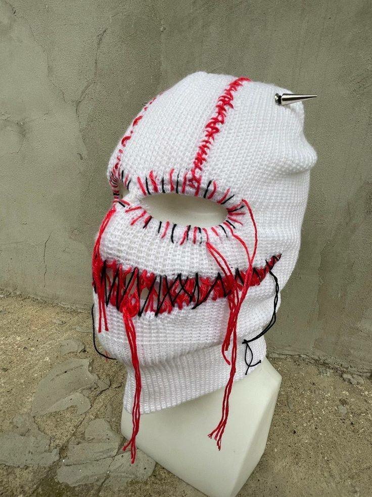 Transformez votre style avec cette cagoule tricotée unique, idéale pour les amateurs de mode alternative. Avec ses détails rouges et noirs audacieux, elle est parfaite pour se démarquer dans n'importe quelle occasion. Confortable et originale, c'est un accessoire incontournable pour affirmer votre personnalité.