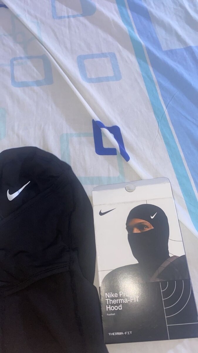 Cette cagoule Nike Pro Therma-FIT offre une chaleur optimale avec son tissu isolant, parfaite pour les activités sportives par temps froid.