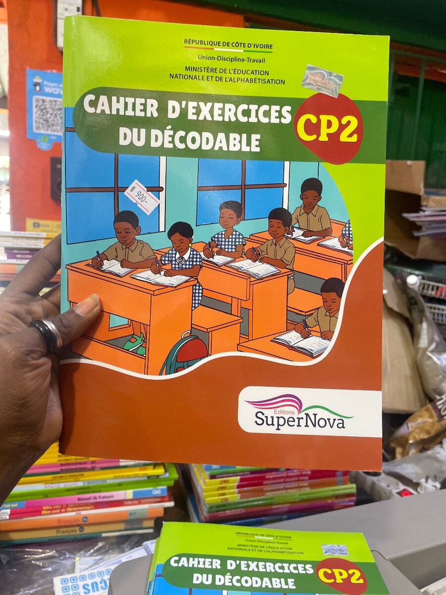 Cahier d'exercices décodable CP2 pour l'apprentissage en classe. Idéal pour renforcer les compétences des élèves de primaire avec des exercices adaptés aux programmes scolaires. Utilisé en Côte d'Ivoire par le Ministère de l'Éducation Nationale.