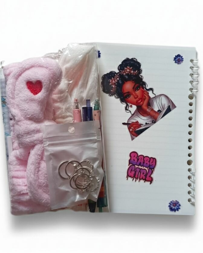Set de papeterie avec cahier stylisé et accessoires. Parfait pour les ados et passionnés de mode. Inclut des outils d'écriture et des accessoires de beauté pour une touche personnelle à vos notes.