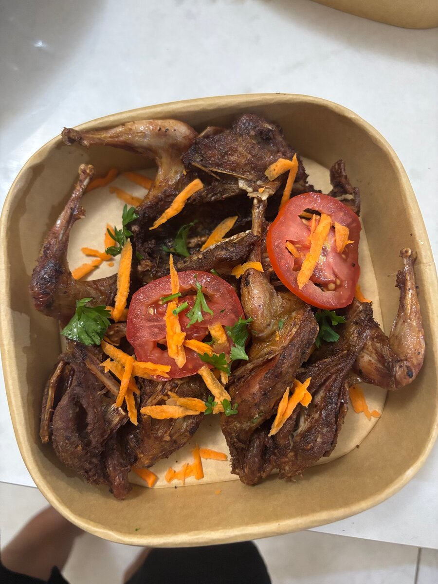 Savourez nos cailles dorée épicé, accompagné d attieke, alloco , frites etc .. Parfait pour un repas convivial ou un pique-nique. Un régal pour les amateurs de volaille!