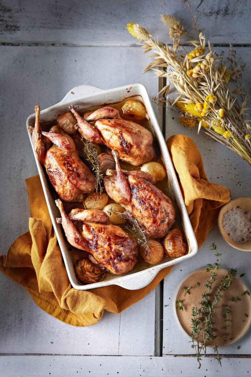 Découvrez notre savoureuse caille rôtie aux herbes, accompagnée de pommes de terre dorées. Parfait pour un dîner raffiné qui impressionnera vos invités. Une alliance de saveurs délicates et de simplicité pour vos repas festifs ou quotidiens.