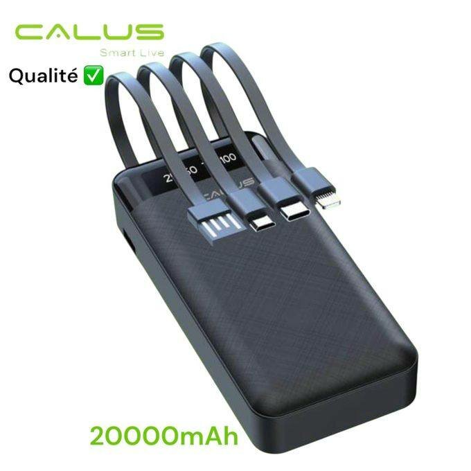 Le Calus P-267 est une batterie externe haute capacité de 20000mAh, conçue pour offrir une charge rapide et pratique. Équipée de 4 câbles intégrés (USB-C, Lightning, Micro-USB, USB-A), elle permet de recharger simultanément plusieurs appareils tels que smartphones, tablettes et autres gadgets compatibles. Son design compact et sa compatibilité étendue en font un choix idéal pour les utilisateurs en déplacement.