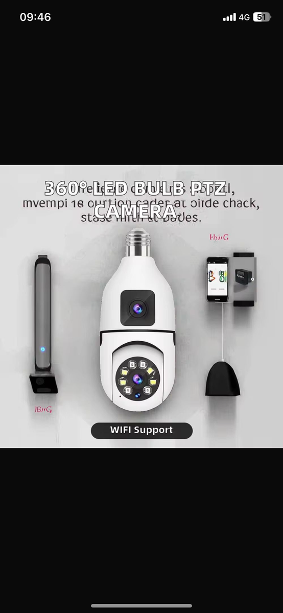 Caméra de surveillance LED WiFi 360° avec éclairage. Idéale pour la sécurité de votre maison. Compatible WiFi, rotation 360°.