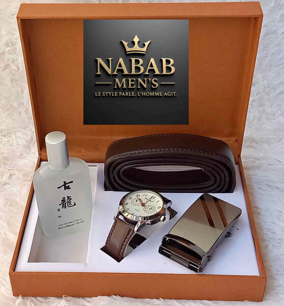 Coffret Cadeau Homme NABAB - Montre, Ceinture, Parfum