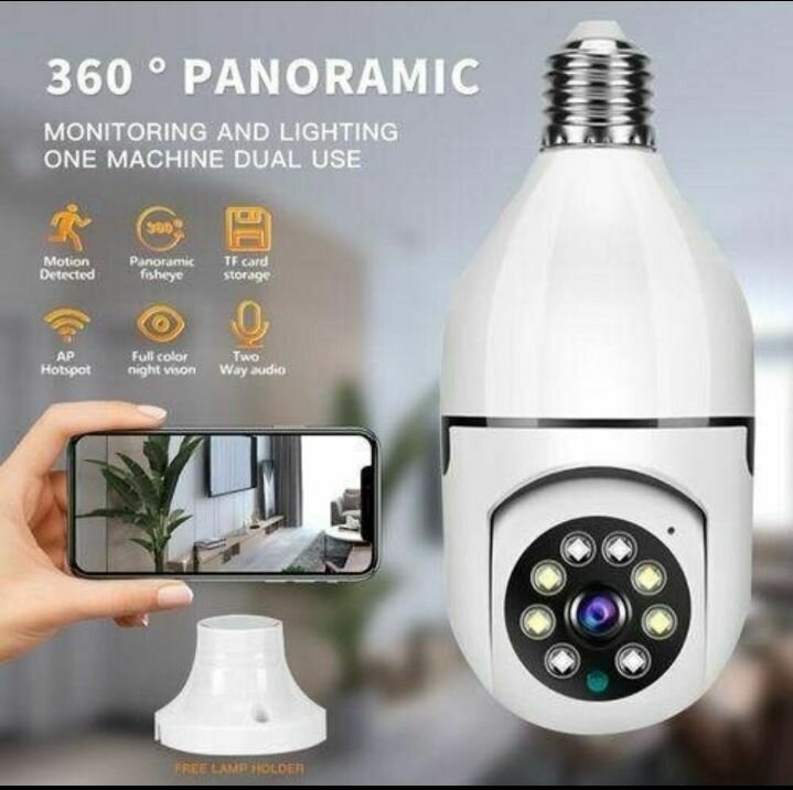 Caméra de sécurité LED rotative 360°, éclairage nocturne, détection de mouvement, alerte en temps réel sur smartphone. Idéale pour surveiller votre maison ou bureau.
