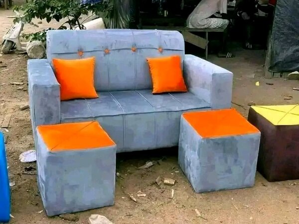 Canapé gris en velours avec ottomans