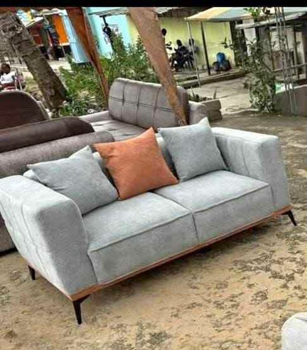 Canapé moderne en tissu gris avec pieds en métal noir. Conçu pour le salon, il offre un confort optimal avec ses coussins moelleux. Facile à intégrer dans tout type de décoration.