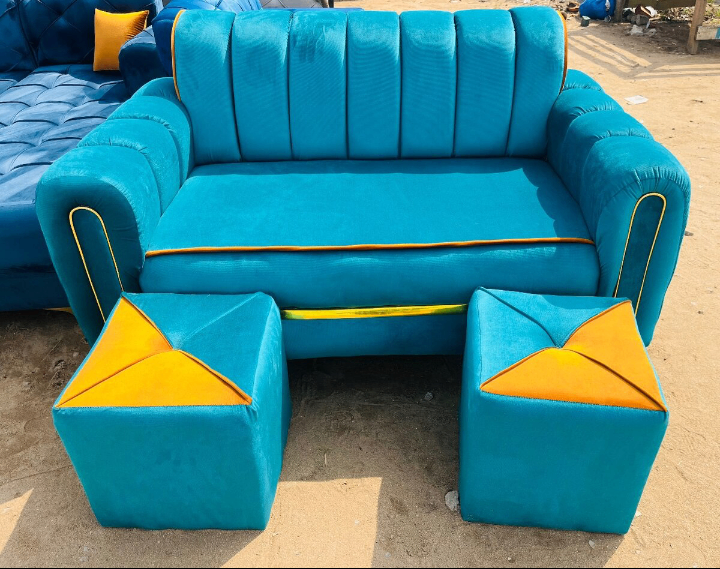 Transformez votre salon avec ce canapé bleu vibrant et ses poufs assortis. Parfait pour un intérieur moderne et stylé, il offre un confort exceptionnel et une touche de couleur vive. Idéal pour se détendre ou recevoir des invités.