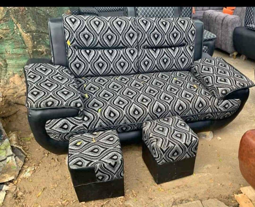 Ce canapé élégant et confortable est parfait pour agrémenter votre salon. Avec son motif géométrique unique et ses repose-pieds assortis, il combine style et fonctionnalité. Idéal pour se détendre ou recevoir des invités avec élégance.