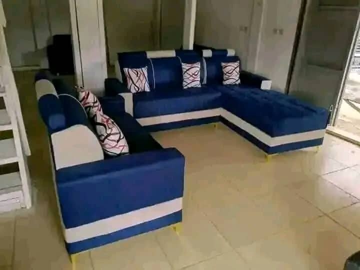 Canapé d'angle bleu et beige