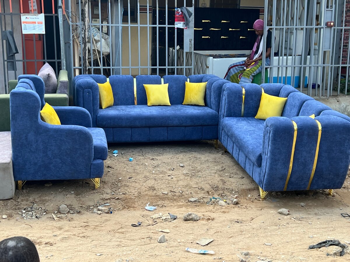 Ajoutez du style et du confort à votre salon avec ce canapé d'angle bleu moderne. Conçu avec des matériaux de qualité, il inclut des coussins jaunes pour une touche de couleur vive. Idéal pour les réunions de famille ou les moments de détente!