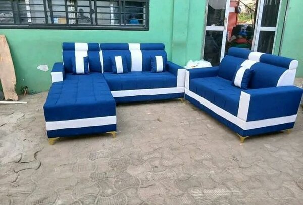 Ensemble de canapés en cuir noir avec motifs imprimés, idéal pour un salon moderne. Confortable et élégant, disponible en ensemble ou séparément.