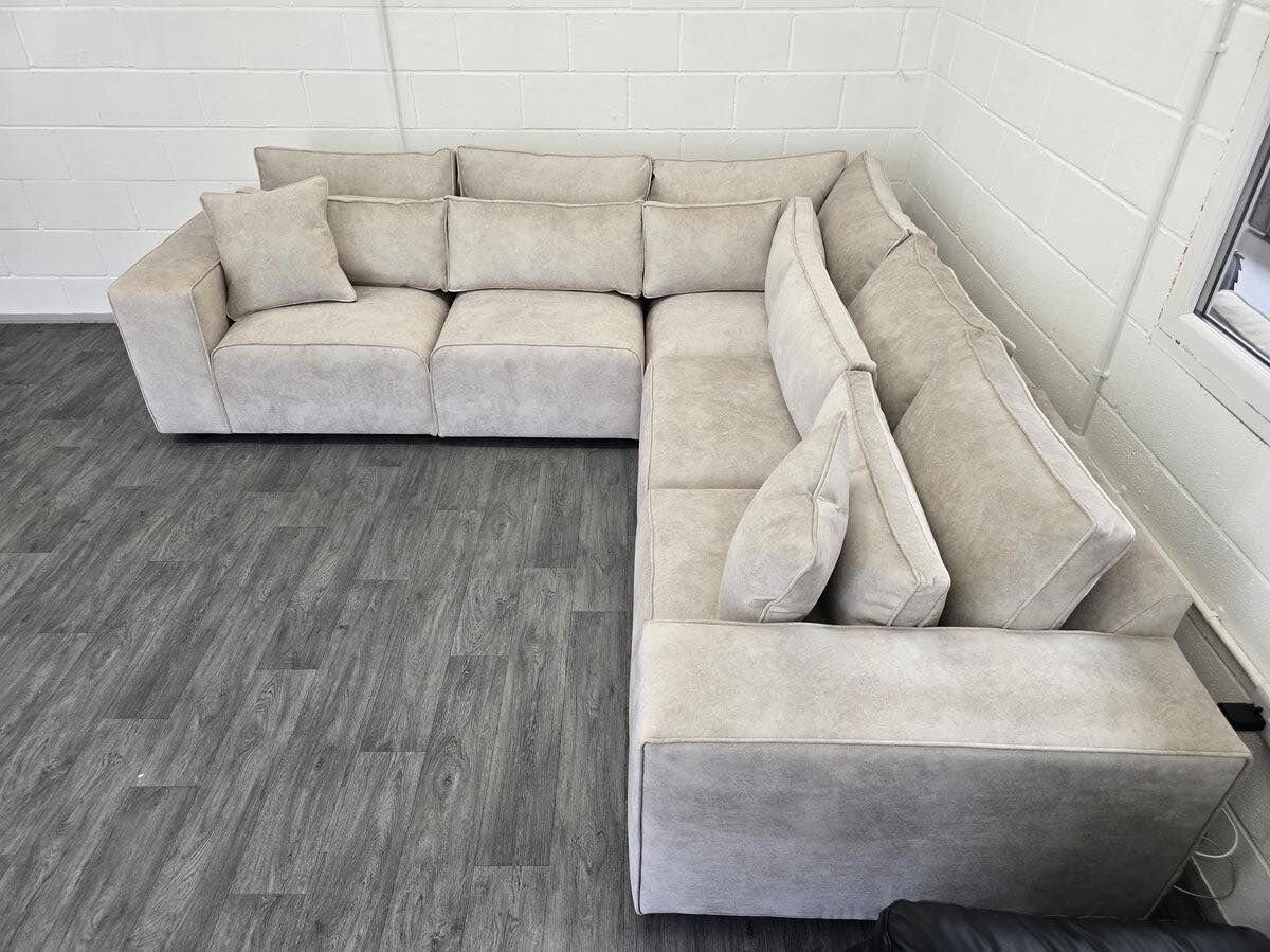Découvrez la promotion de ce canapé d'angle confortable et moderne en tissu beige. Idéal pour les salons spacieux, il offre un espace de détente convivial. Fabriqué avec des matériaux de qualité, il assure une durabilité et un confort optimal.