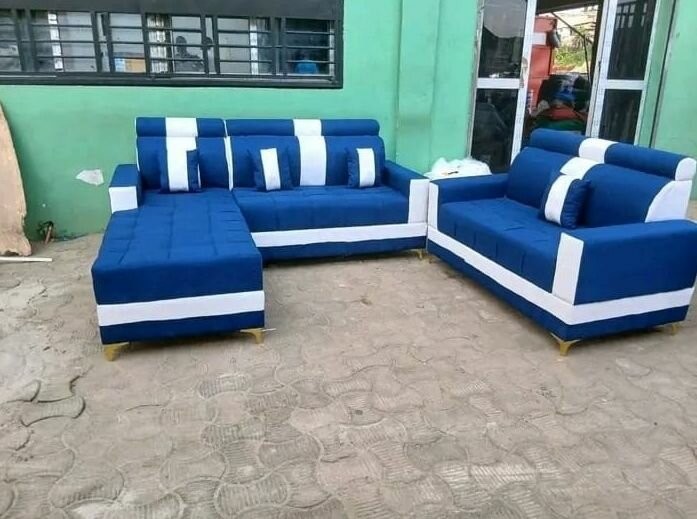 Canapé d'angle bleu et blanc design