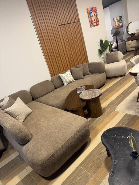 Canapé en tissu marron pour salon