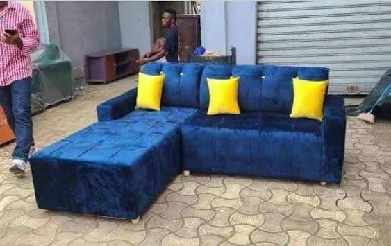 Découvrez ce magnifique canapé d'angle en velours bleu, alliant confort et élégance. Parfait pour un salon moderne, il offre suffisamment d'espace pour toute la famille. Ses coussins jaunes ajoutent une touche de couleur vive, rendant votre espace convivial et accueillant. Idéal pour se détendre après une longue journée.