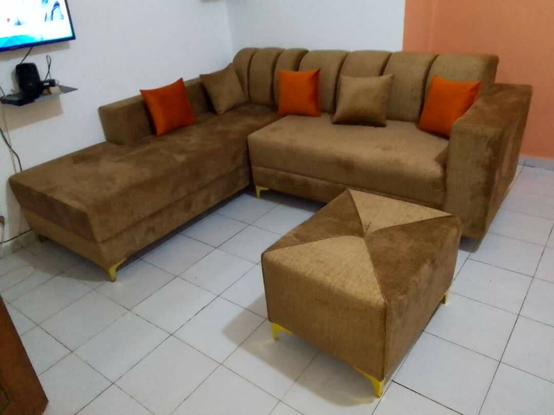 Transformez votre salon avec ce canapé d'angle en velours luxueux. Confortable et élégant, il est parfait pour recevoir des invités ou pour vos moments de détente. Ses coussins colorés ajoutent une touche de style moderne.