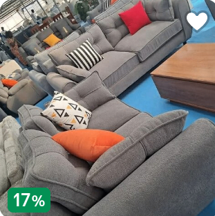 Canapé d'angle gris avec appuie-tête et coussins déco. Confortable et moderne, idéal pour votre salon. Tissu doux et résistant.