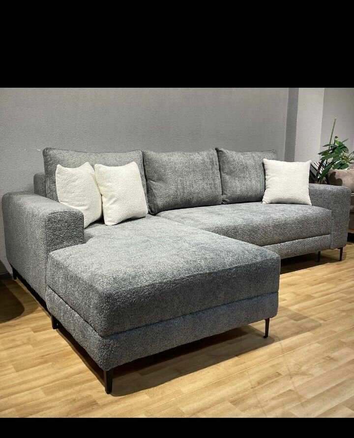 Canapé d'angle gris moderne avec méridienne pour un salon confortable. Design épuré et élégant, idéal pour créer un espace de détente. Revêtement en tissu doux et durable. Parfait pour les intérieurs contemporains.