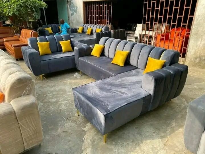 Canapé d'angle gris avec ottomane