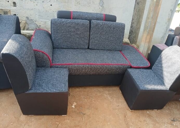 Ensemble de canapé d'angle gris avec ottomans et coutures rouges. Conçu pour le confort et la relaxation, cet ensemble est idéal pour les salons modernes. Tissu résistant et design élégant.