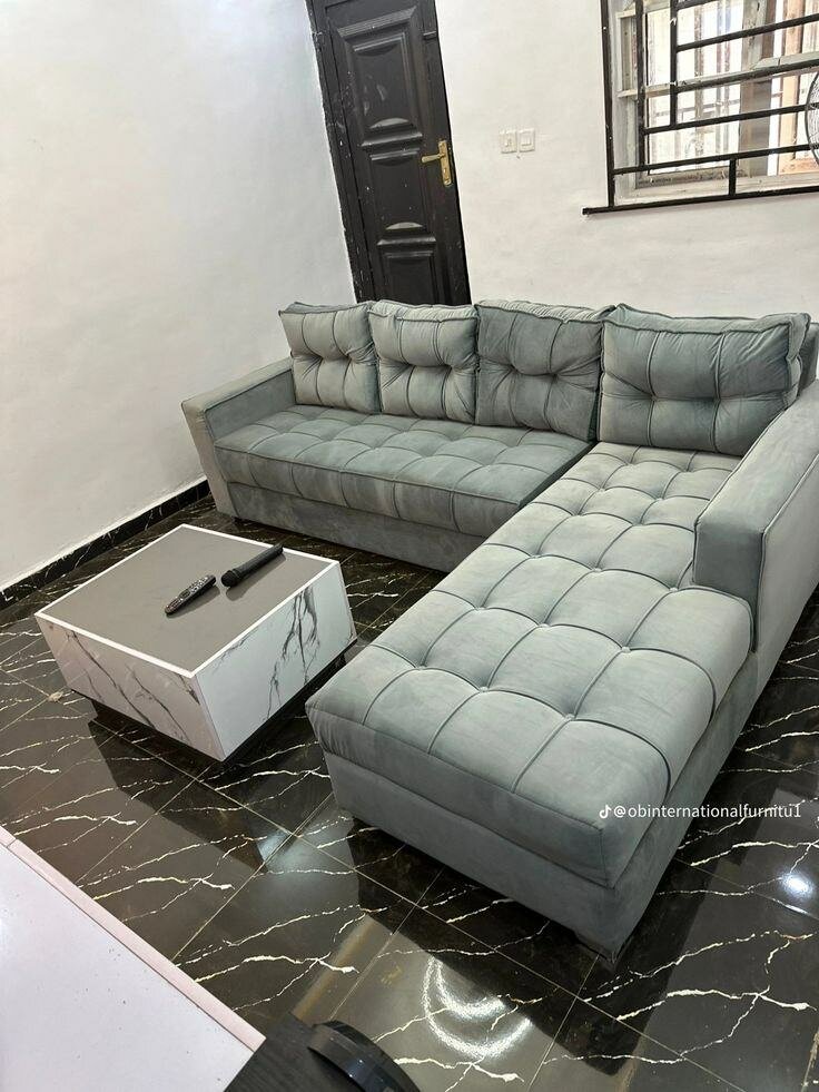 Élégant canapé d'angle gris en tissu pour votre salon. Design moderne et confortable, parfait pour se détendre. Tissu de haute qualité, facile à entretenir.