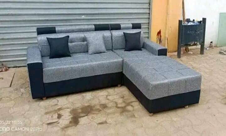 Canapé d'angle gris et noir en tissu