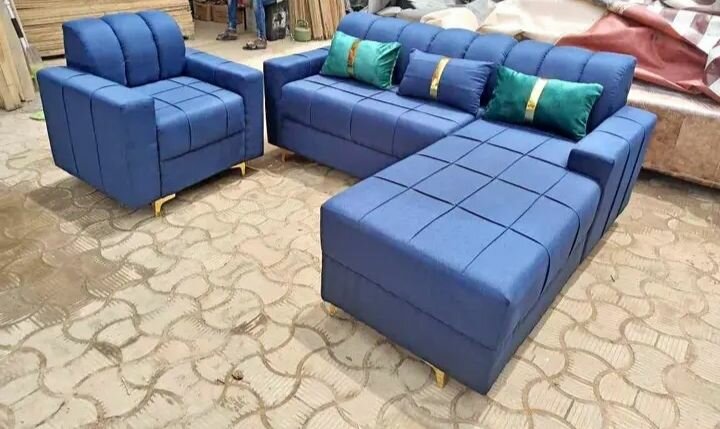 Ajoutez une touche d'élégance à votre salon avec ce canapé d'angle moderne bleu. Confortable et spacieux, il dispose d'accoudoirs rembourrés et de coussins moelleux pour un confort optimal. Parfait pour les moments de détente ou accueillir vos invités. Dimensions généreuses pour un espace convivial.