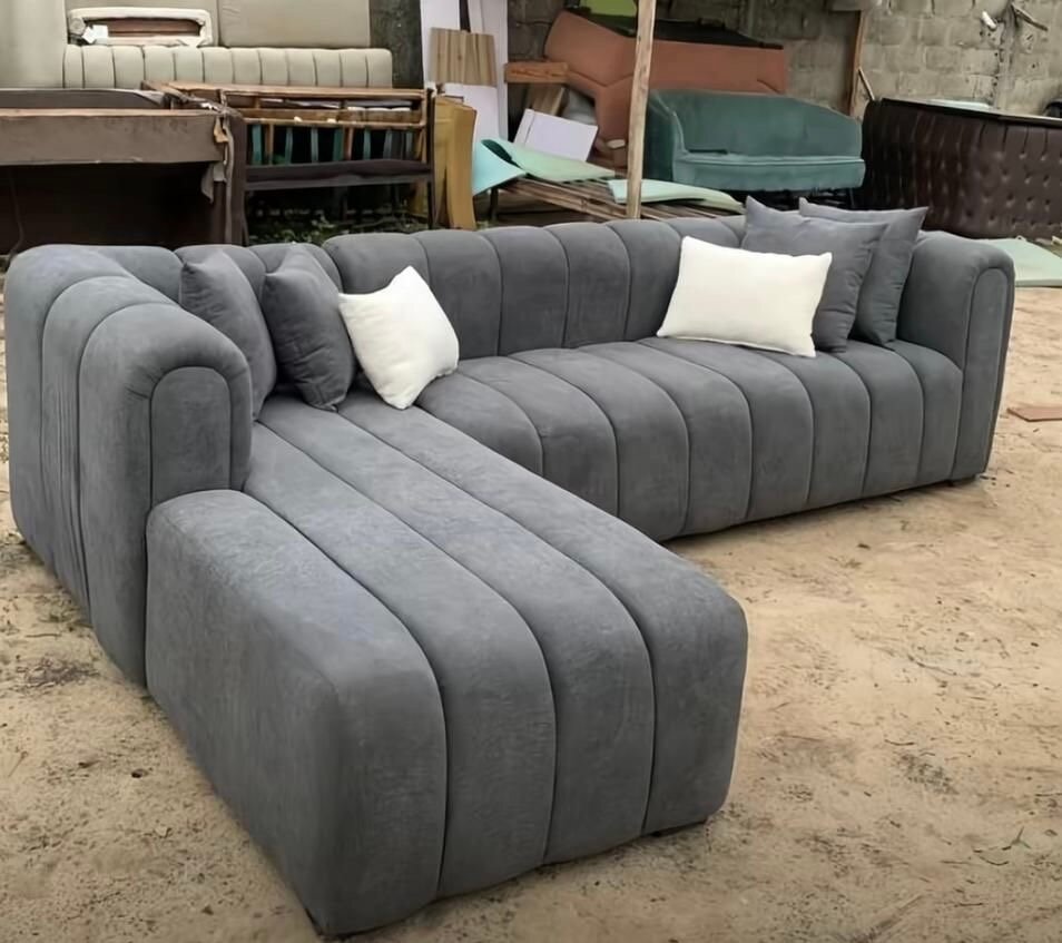 Transformez votre salon avec ce canapé d'angle moderne en tissu gris. Confort exceptionnel grâce à son rembourrage moelleux et ses coussins assortis. Idéal pour les soirées cosy avec la famille. Design élégant qui s'intègre parfaitement dans tout intérieur contemporain.