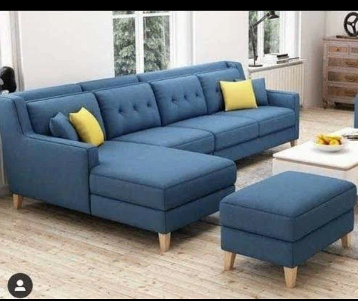 Ajoutez une touche élégante à votre salon avec ce canapé d'angle moderne en bleu. Confortable et spacieux, parfait pour accueillir toute la famille. Les coussins jaunes offrent un contraste lumineux et accueillant.