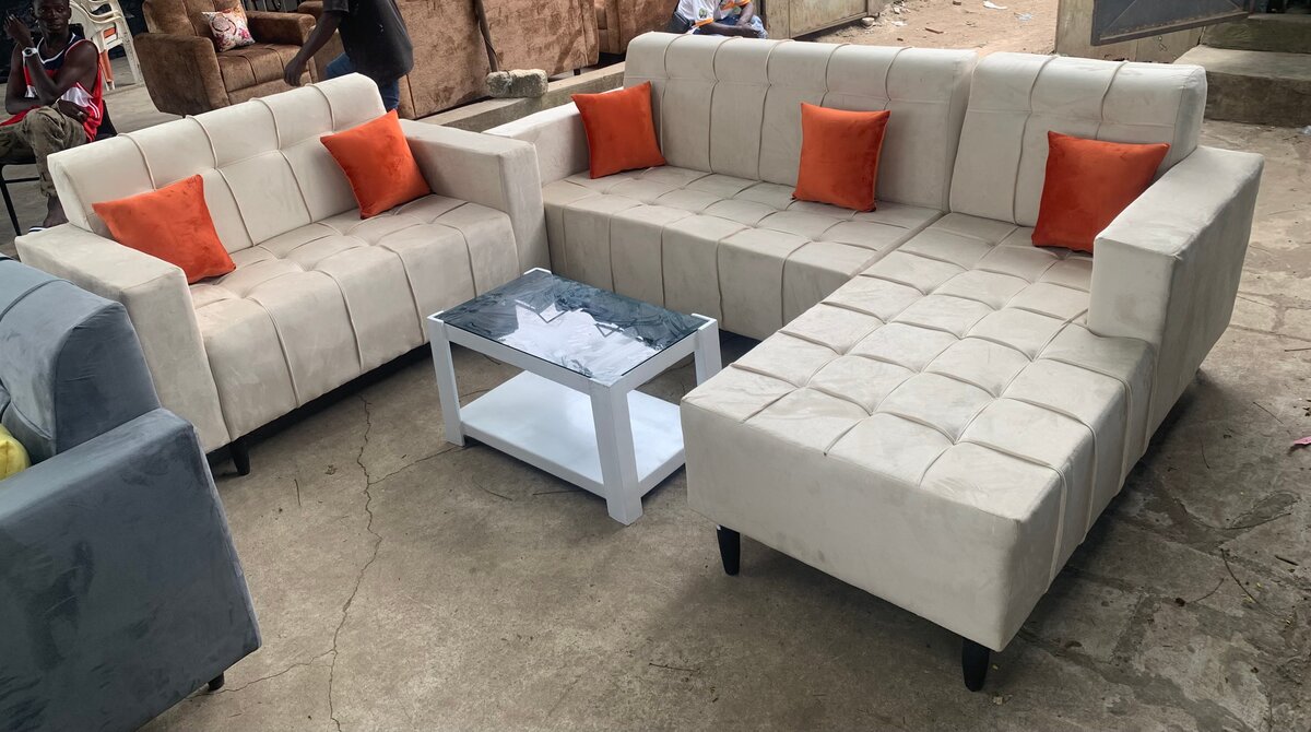 Améliorez votre salon avec ce canapé d'angle moderne et élégant, doté de coussins orange pour une touche de couleur. Son design modulable s'adapte parfaitement aux grands et petits espaces, offrant confort et style. Idéal pour les soirées en famille ou entre amis.