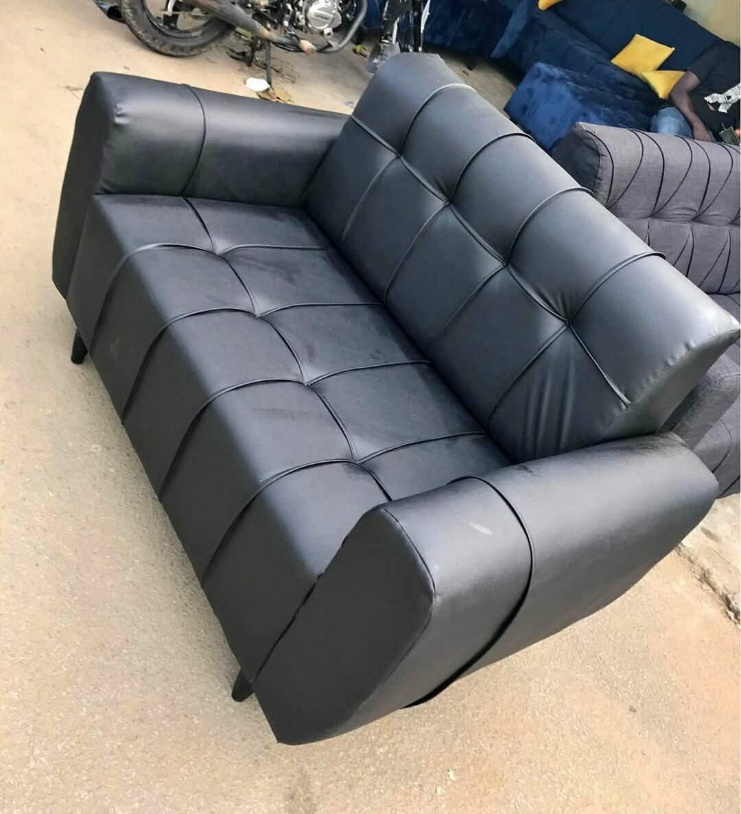 Canapé moderne en cuir synthétique noir, design confortable pour salon. Facile à nettoyer, idéal pour les espaces modernes. Conçu pour offrir un confort optimal, parfait pour le quotidien.
