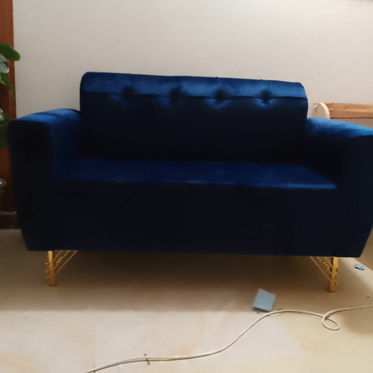 Ajoutez une touche de sophistication à votre salon avec ce canapé en velours bleu élégant. Conçu pour le confort optimal, il est parfait pour les moments de détente ou accueillir des invités. Ses pieds dorés renforcent son allure moderne et luxueuse. Idéal pour un salon sophistiqué.