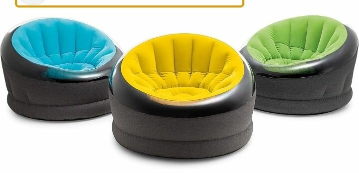 Idéal pour l'intérieur et l'extérieur Fond renforcé à 2 plis résistant aux perforations Fond renforcé à 2 plis résistant aux perforations Taille gonflée approximative 44" x 43" x 27" Couleur: Jaune