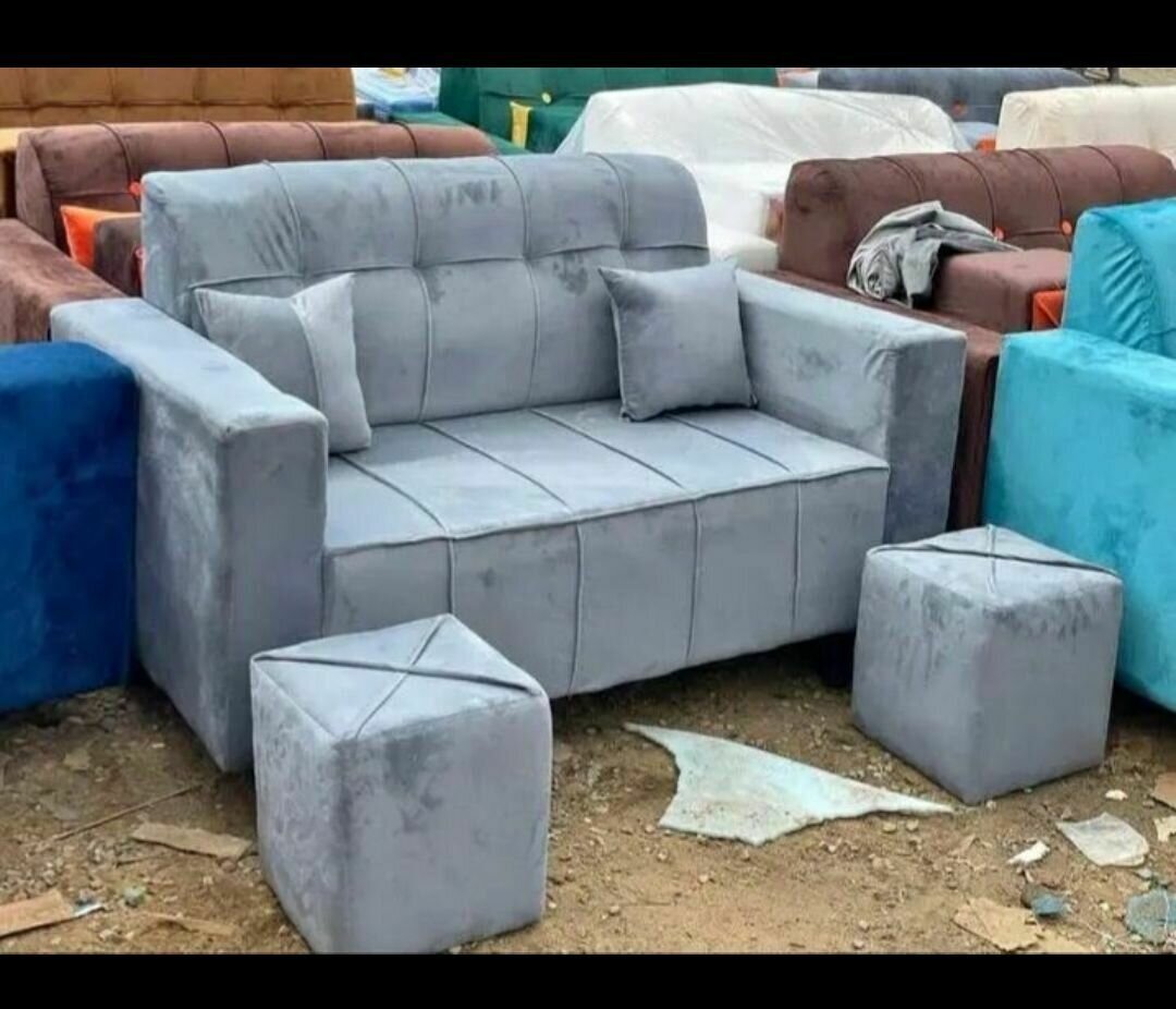 Découvrez notre canapé gris en velours moderne, parfait pour un salon élégant. Conçu pour le confort, il est accompagné de deux poufs pour une relaxation totale. Idéal pour les amateurs de design contemporain.