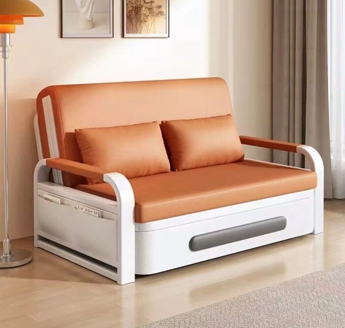 Découvrez notre canapé lit avec rangement, idéal pour les petits espaces. Conçu pour être pratique et confortable, il est parfait pour une utilisation quotidienne ou pour les invités. Le cuir orange ajoute une touche de couleur et de modernité à votre décoration intérieure.