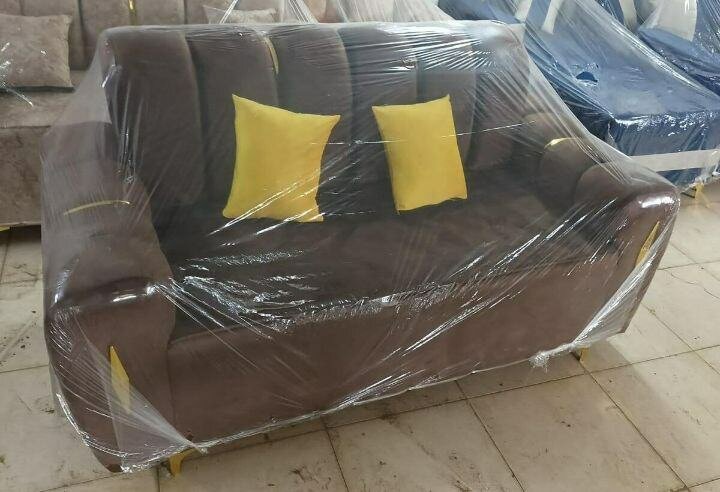 Améliorez votre salon avec ce canapé moderne en tissu brun, complété par des coussins jaunes élégants. Parfait pour un confort optimal et un style sophistiqué. Idéal pour les intérieurs contemporains.