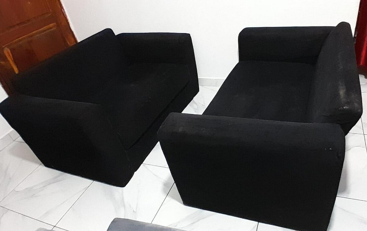Élégant canapé modulable noir en tissu, idéal pour la salle de séjour ou le salon. Confortable et moderne, parfait pour créer un espace convivial et design.