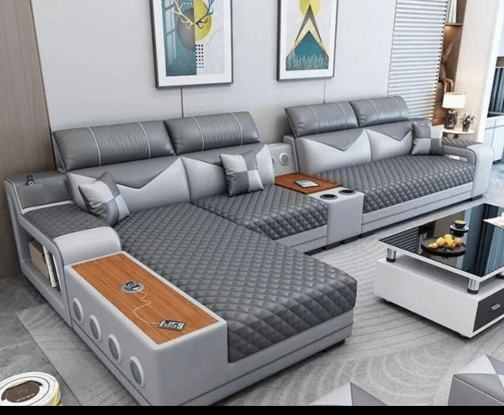 Découvrez notre canapé modulaire intelligent, conçu pour offrir un confort et une fonctionnalité exceptionnels. Fabriqué en cuir gris de haute qualité, il est équipé de rangements intégrés, de tables latérales et de prises USB. Idéal pour les salons modernes, il offre un design élégant et une grande flexibilité pour s'adapter à vos besoins.