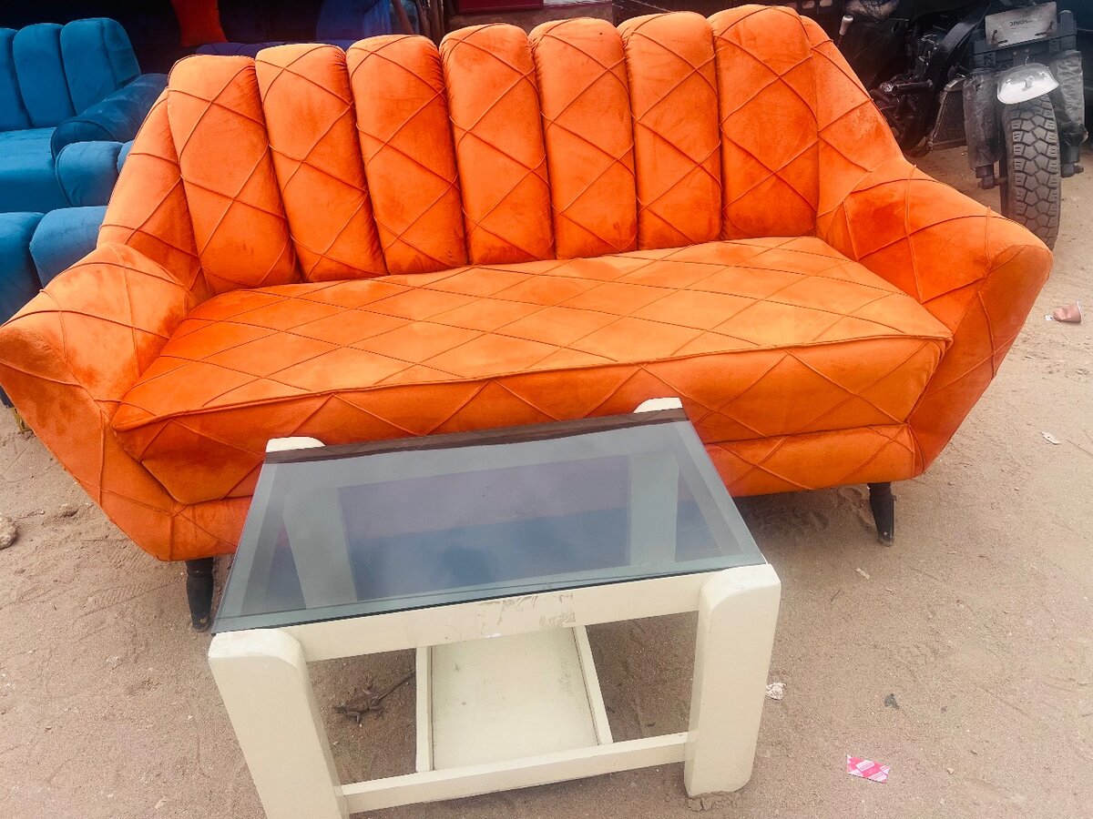 Ajoutez une touche de couleur et de confort à votre salon avec ce canapé moderne en velours orange. Son design élégant et ses coussins moelleux offrent un confort exceptionnel, idéal pour se détendre ou recevoir des invités. Parfait pour tout espace de vie tendance.