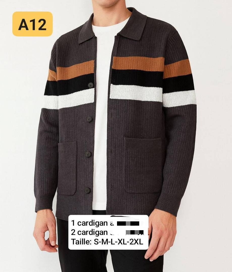 Découvrez notre cardigan à rayures pour homme, parfait pour un look décontracté mais élégant. Fabriqué en matériaux de haute qualité, ce cardigan offre confort et style avec ses bandes contrastantes. Idéal pour toutes les saisons et occasions.