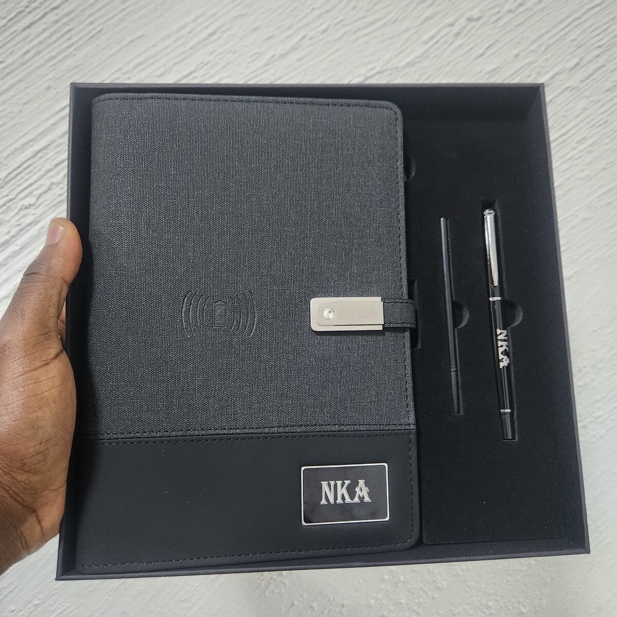 Découvrez notre carnet de notes avec chargeur sans fil intégré, idéal pour les professionnels en déplacement. Ce cahier élégant combine organisation et technologie, vous permettant de recharger votre smartphone tout en planifiant votre journée. Parfait pour les réunions, les voyages d'affaires, ou comme cadeau raffiné. Adoptez la simplicité et l'innovation dans un design moderne.