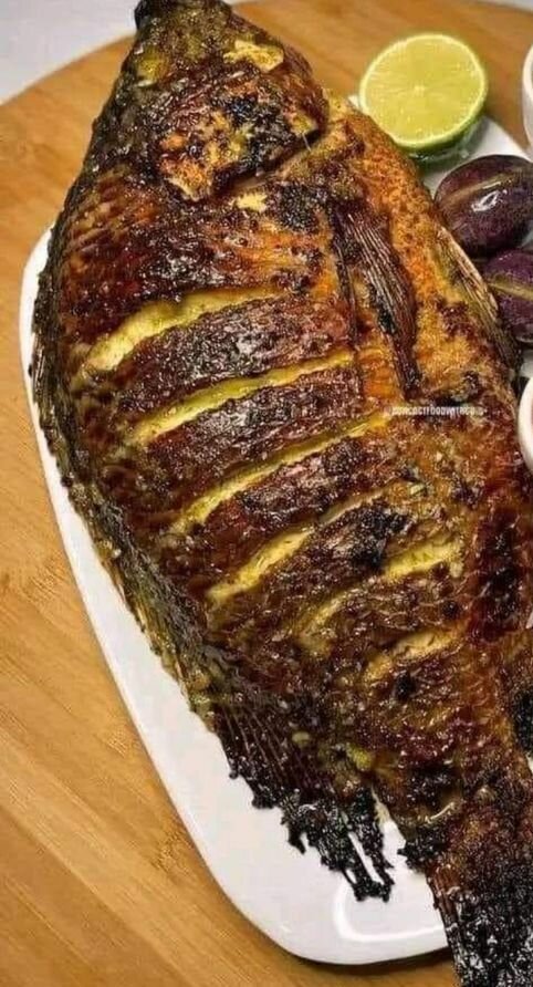 Poisson Carpe Braisée Assaisonnée Aux Épices Du Cameroun